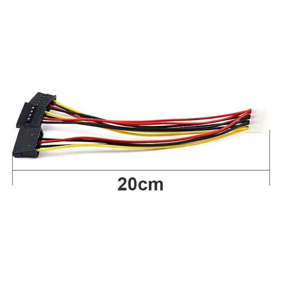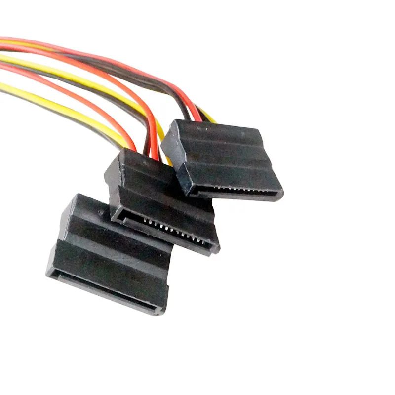 Этот кабель-разветвитель питания предназначен для подключения до трёх SATA-устройств к одному источнику питания с разъёмом IDE Molex 4-pin. Используется для питания жёстких дисков, SSD и других комплектующих ПК с интерфейсом SATA.