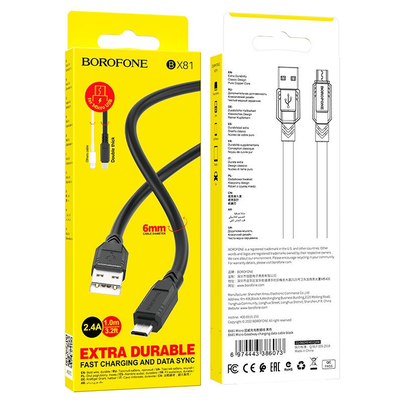 Кабель Borofone BX81 USB → MicroUSB — это надежный и удобный аксессуар для зарядки и синхронизации ваших устройств с разъемом MicroUSB. Этот кабель сочетает высокое качество материалов, долговечность и современный дизайн, обеспечивая стабильную передачу данных и безопасную зарядку.
