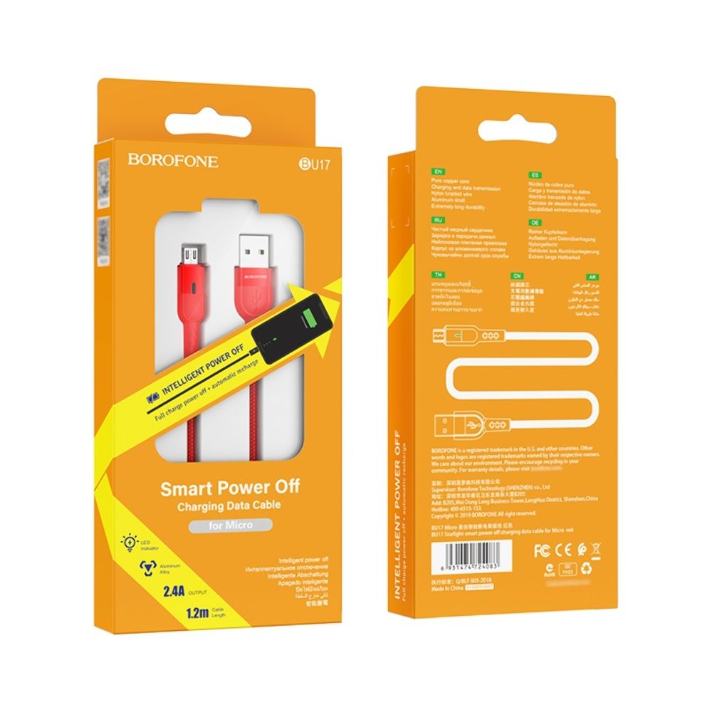 Кабель Borofone BU17 с индикатором USB to MicroUSB