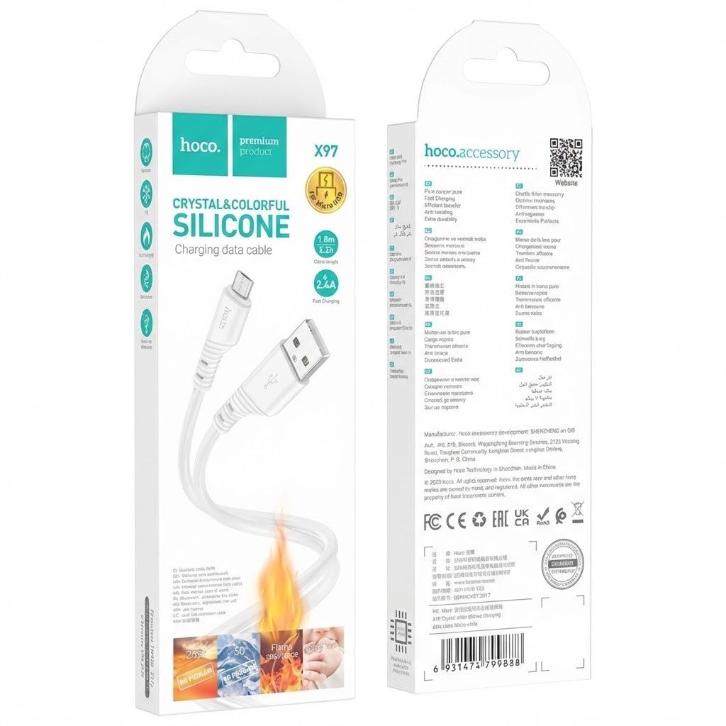 Кабель HOCO X97 USB - MicroUSB — это высокотехнологичный и износостойкий кабель для зарядки и передачи данных устройств с разъемом MicroUSB. Модель сочетает прочную конструкцию, экологичный силиконовый материал и стабильную подачу тока до 2.4 А. Этот кабель обеспечивает безопасную зарядку с постоянным напряжением и надежную синхронизацию данных при подключении к компьютеру, ноутбуку или сетевому адаптеру.