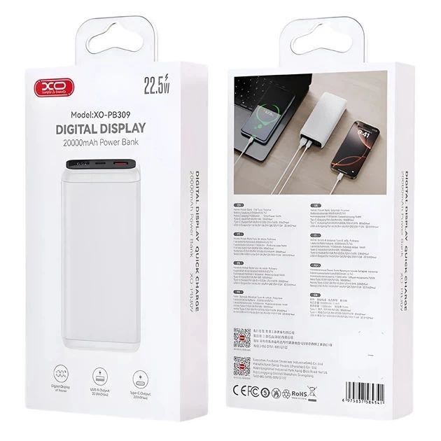 Повербанк XO PB309 22.5W Digital Fast Charger 20000mAh White
