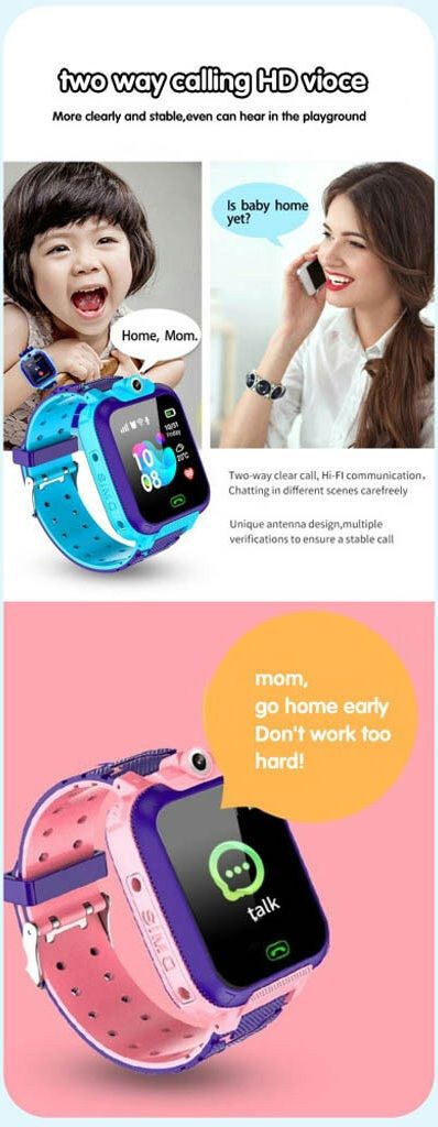 Эти часы оснащены ярким сенсорным дисплеем, встроенной камерой, модулем GPS/LBS позиционирования, поддержкой SIM-карты, а также функциями звонков, голосовых сообщений и кнопкой экстренного вызова SOS. Благодаря этому ребенок может легко связаться с родителями в любой момент.