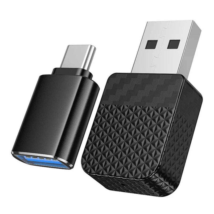 - В комплект входит переходник USB-A на Type-C, который позволяет использовать адаптер с различными мультимедийными системами автомобиля.
