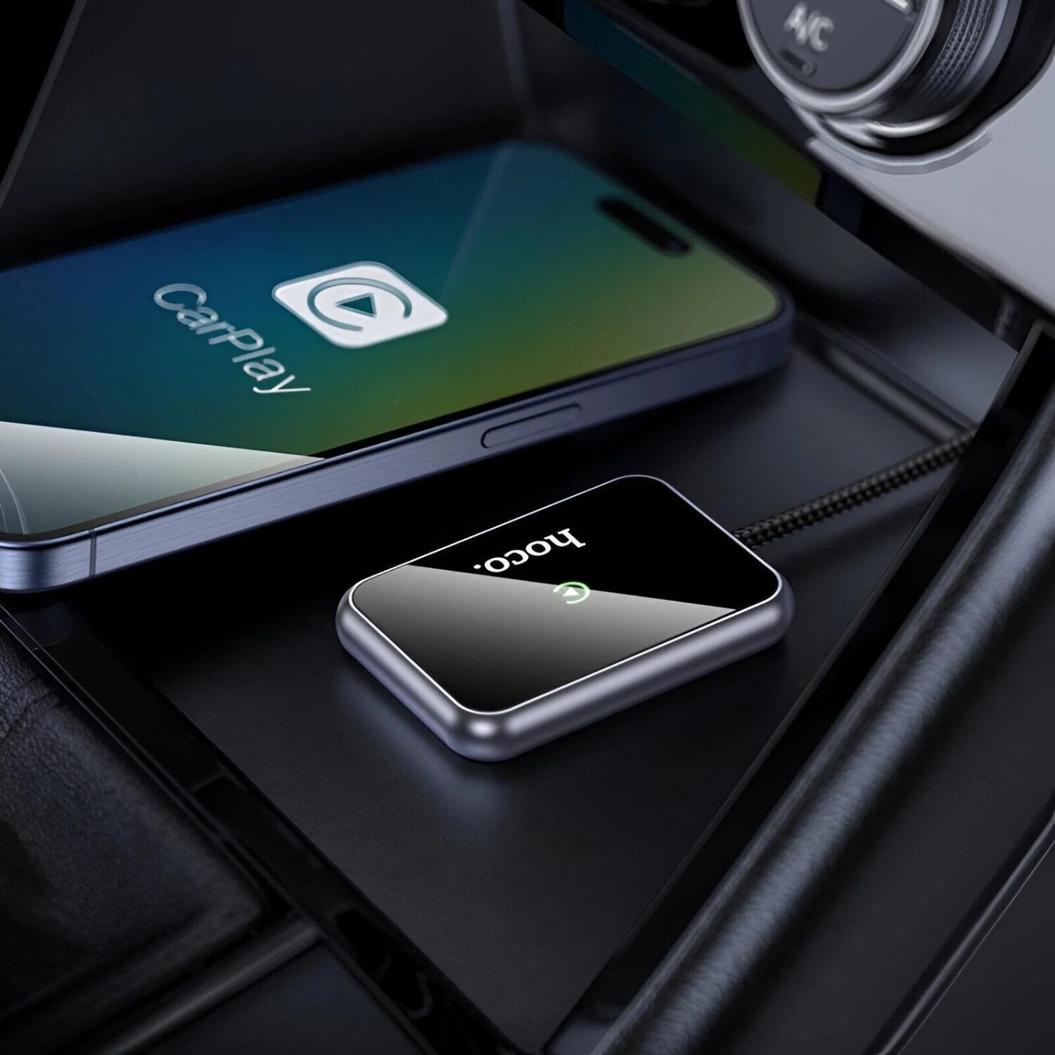 Этот адаптер подключается к штатному USB-порту автомобиля, после чего устанавливает беспроводное соединение со смартфоном через Bluetooth и Wi-Fi. После первой настройки устройство автоматически подключается при каждом запуске автомобиля, обеспечивая мгновенный доступ к интерфейсу CarPlay без необходимости повторного подключения.