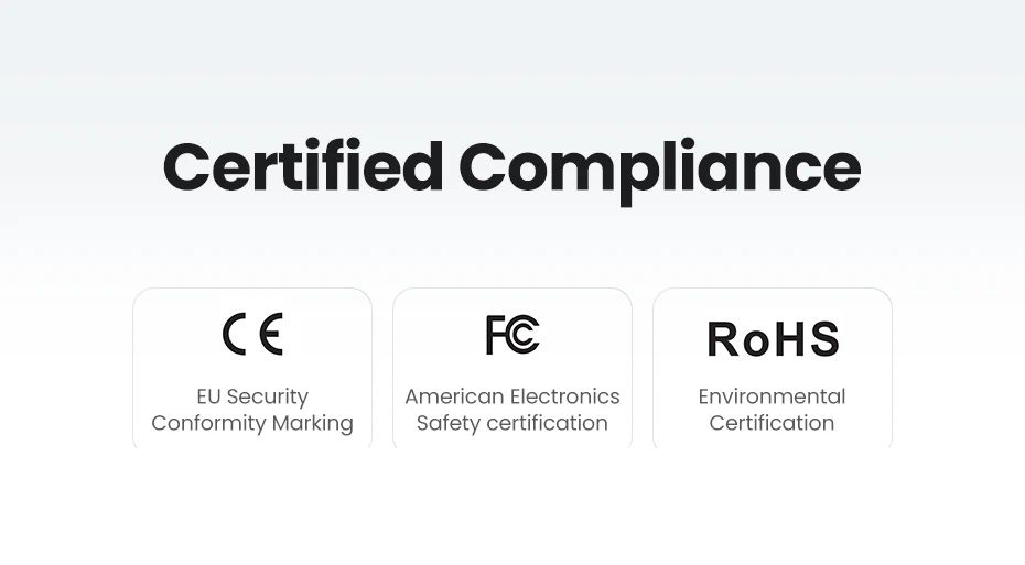 - Устройство соответствует международным стандартам CE, FCC и RoHS, что подтверждает его безопасность, надежность и экологическую совместимость.