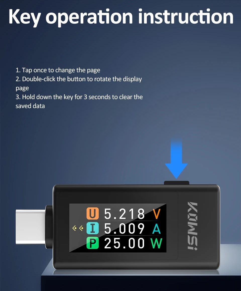 - Этот прибор совместим с современными системами быстрой зарядки и подходит для тестирования устройств с интерфейсом Type-C.