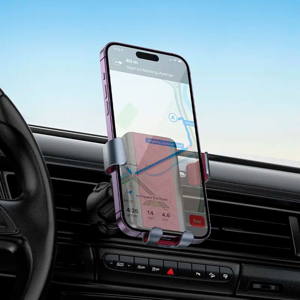Этот держатель крепится на вентиляционную решетку автомобиля и не занимает место на приборной панели, сохраняя свободное пространство в салоне и не перекрывая обзор водителю. Благодаря компактным размерам, прочной конструкции и возможности регулировки угла наклона, этот держатель обеспечивает комфортное использование смартфона для навигации, звонков по громкой связи и управления мультимедиа.