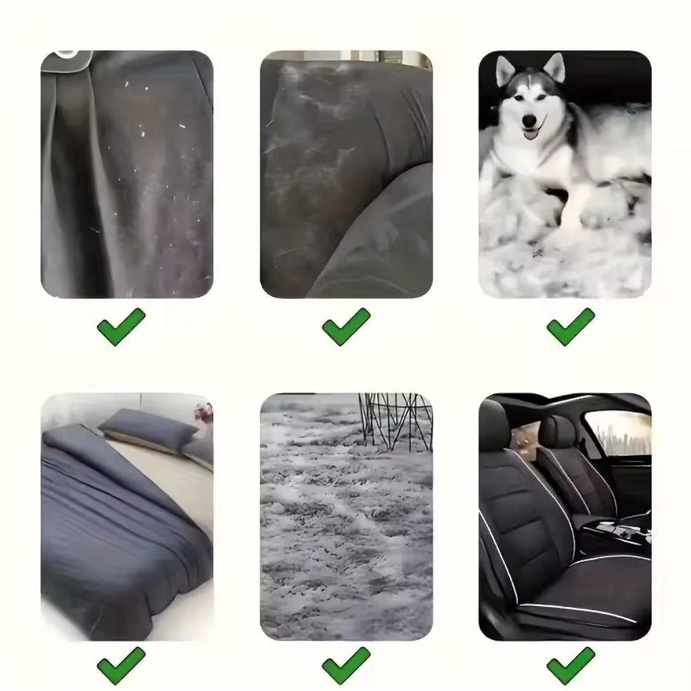 Это практичный многоразовый аксессуар для эффективного удаления шерсти домашних животных, пыли, ворса и мелкого мусора с одежды, мебели и различных текстильных поверхностей. Эта щетка оснащена специальной электростатической тканевой поверхностью, которая притягивает и удерживает загрязнения без использования липких роликов или сменных картриджей.