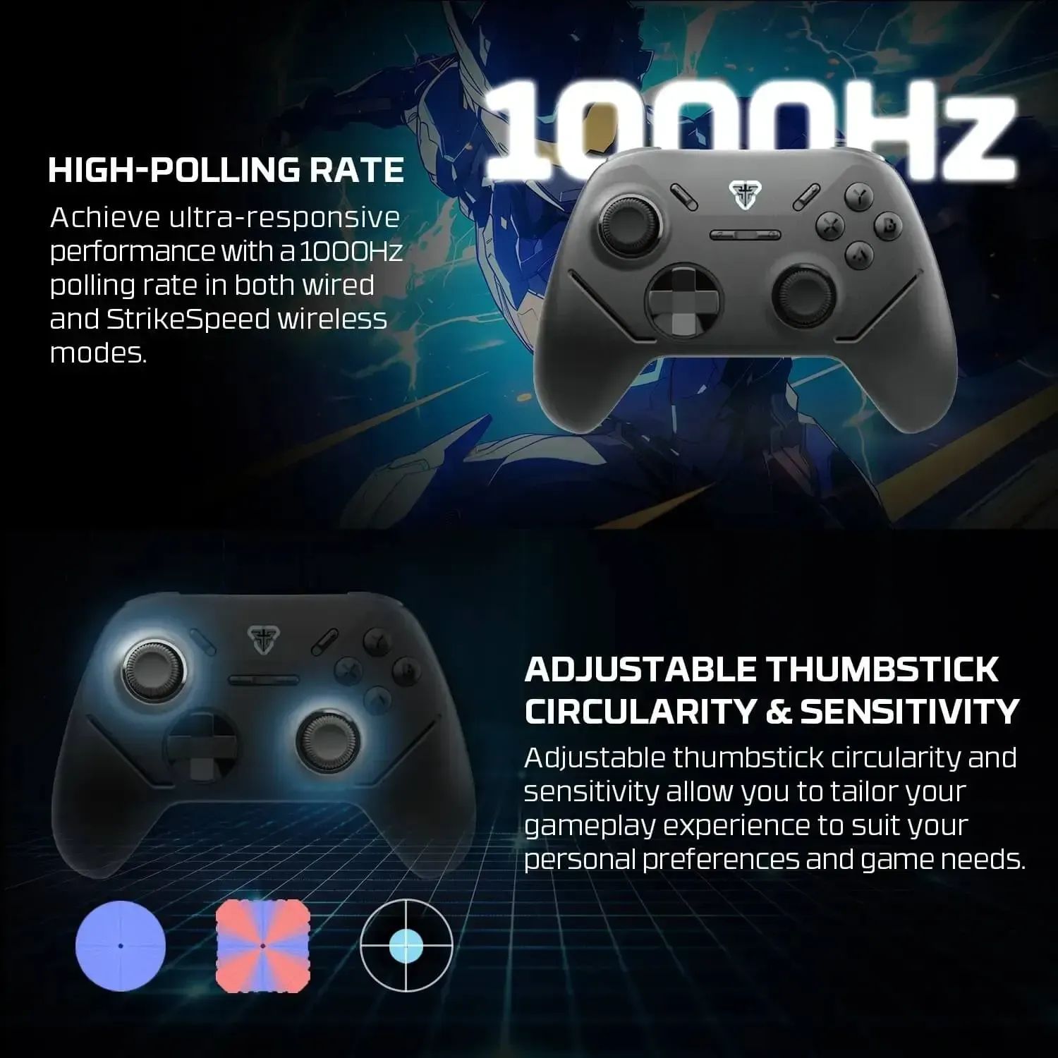 - Стики и триггеры оснащены сенсорами Hall-Effect, которые используют магнитные датчики вместо механических контактов. Это обеспечивает более плавное управление, повышенную точность и полностью устраняет проблему дрейфа стиков.