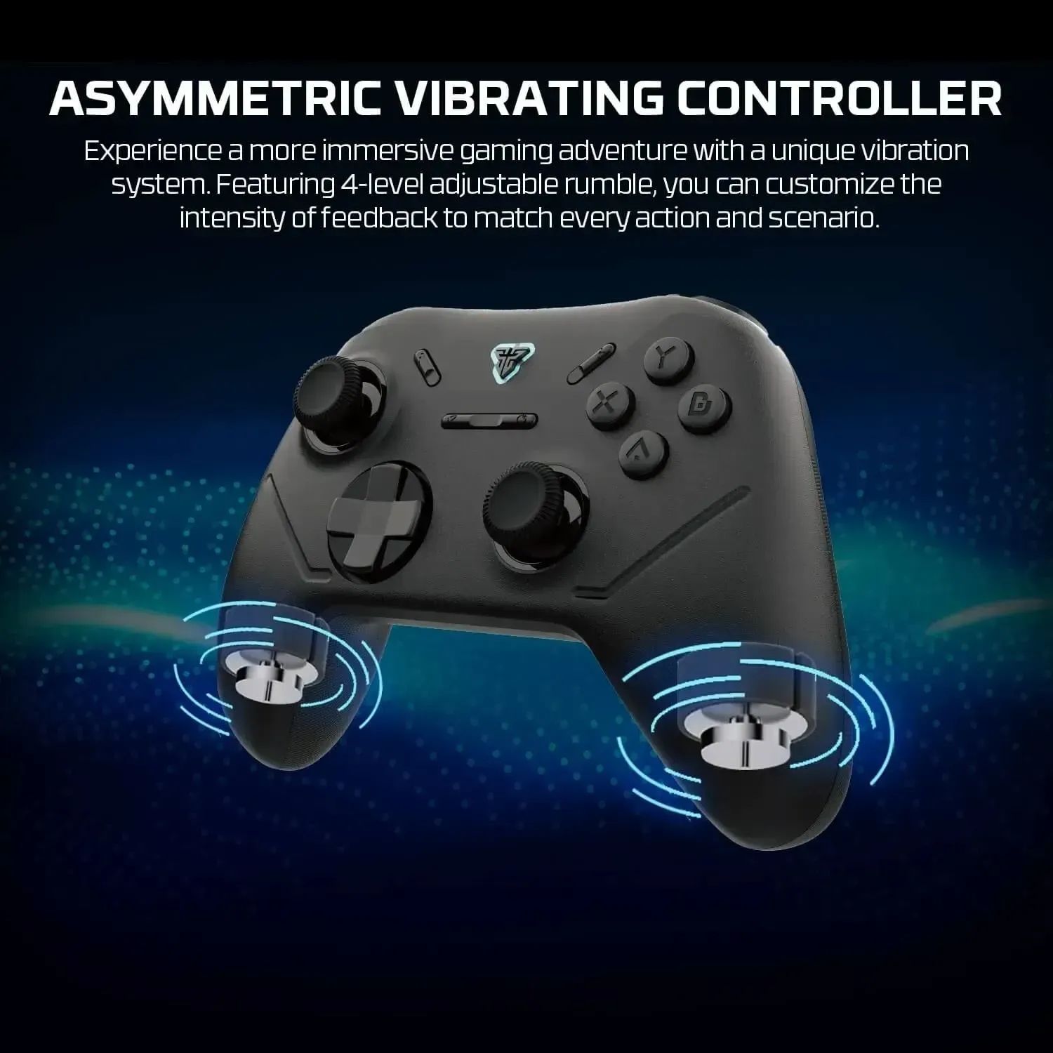 - Этот геймпад оснащён системой асимметричной вибрации с четырьмя уровнями интенсивности. Это позволяет получить реалистичные тактильные ощущения во время игры и настроить отклик под конкретный игровой жанр.