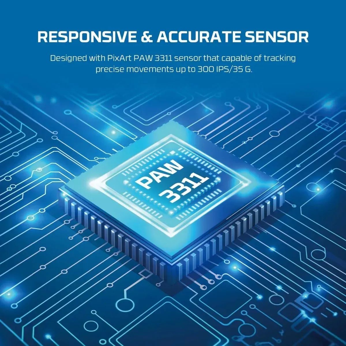 - Сенсор PixArt 3311 обеспечивает точное и быстрое отслеживание движений — от 400 до 12000 DPI.