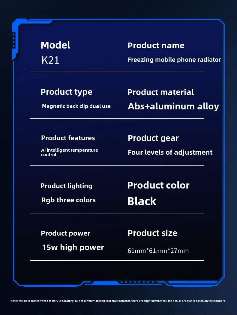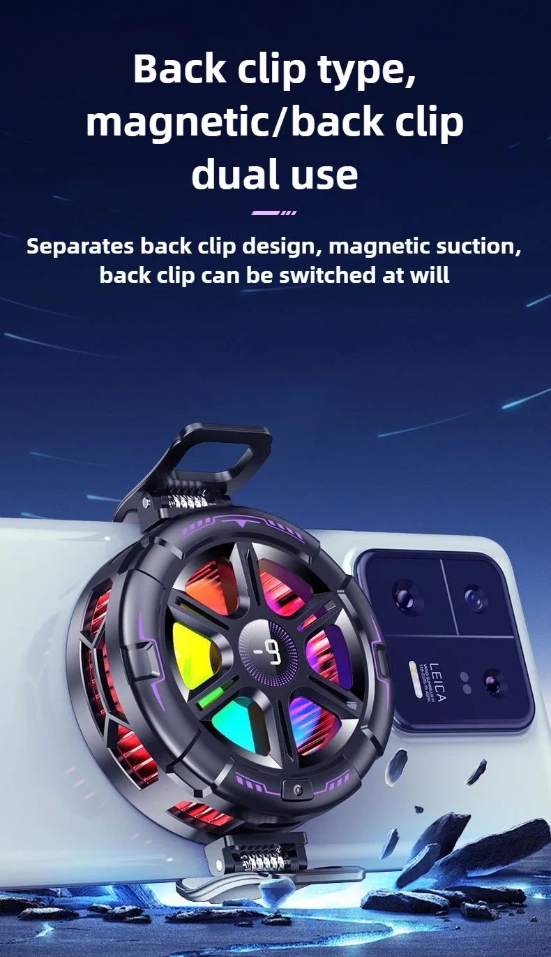 Кулер для смартфона K21AI LED RGB полупроводниковый эффект Пельтье с магнитным и клипсовым креплением и интеллектуальным режимом AI 15W Black
