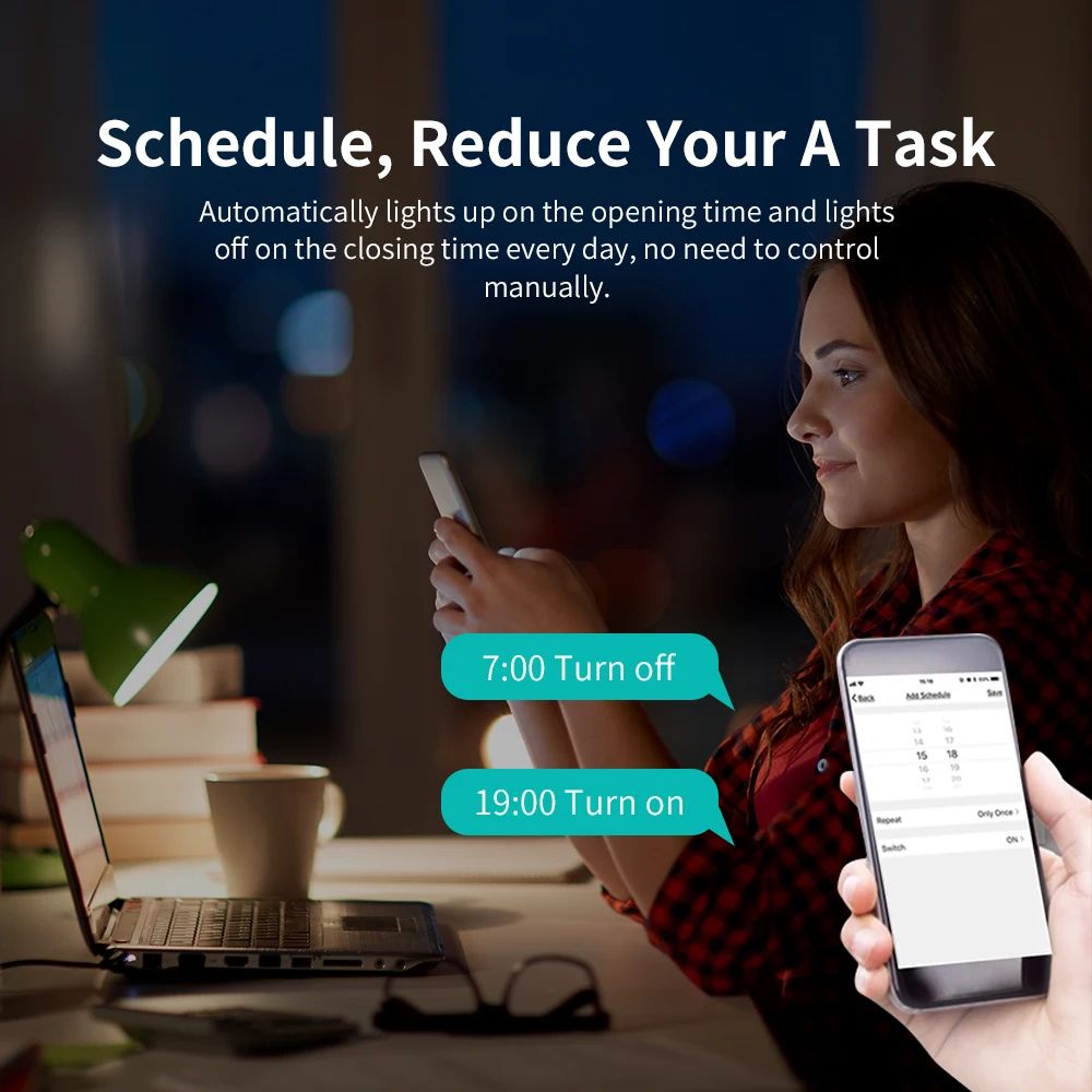 - С помощью приложений Tuya Smart или Smart Life вы можете управлять питанием устройств из любой точки мира — включать и выключать их в одно касание.