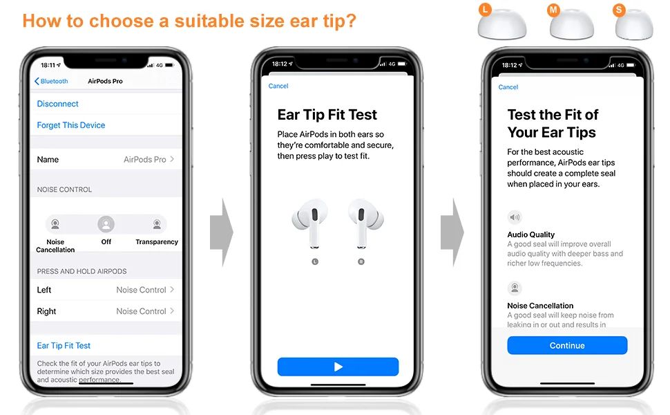 - Для лучшего звука используйте функцию проверки прилегания (Ear Tip Fit Test)