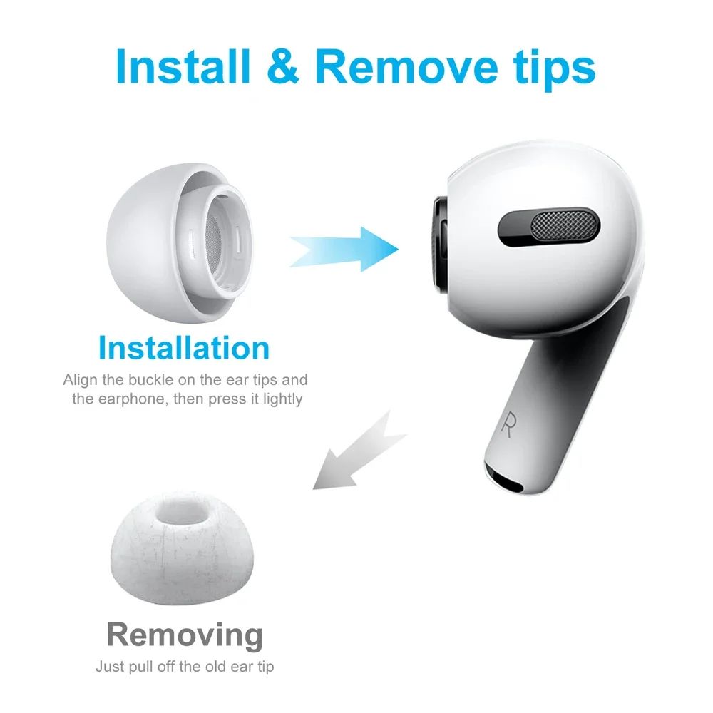 Амбушюры изготовлены из мягкого силикона с элементами, улучшающими герметичность и удобство ношения. Благодаря точной совместимости с оригинальной конструкцией AirPods Pro, насадки легко устанавливаются, надежно фиксируются и не выпадают при использовании. Подходят для ежедневного использования, спорта и длительного прослушивания.