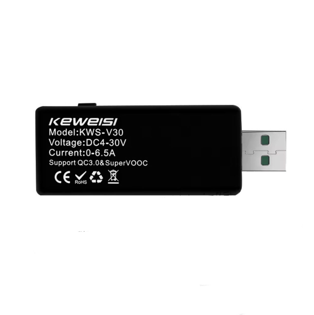 USB тестер тока напряжения емкости KEWEISI KWS-V30 QC3.0 / 4-30V / 195W / 6.5A Black