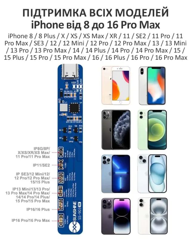 Активатор аккумуляторов Sunshine SS-903 SE для iPhone 8 - 16 Pro Max