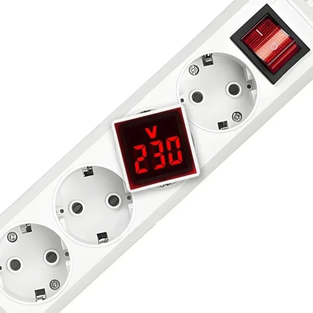 Вольтметр в розетку квадратный (50-500V) EU LED мини BLUE