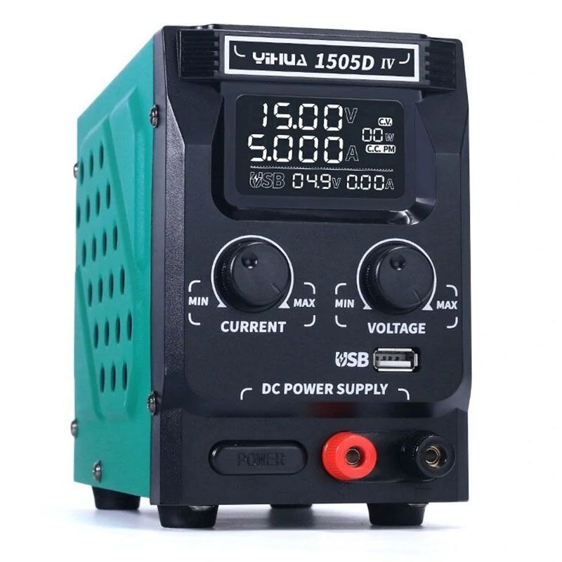 YIHUA 1505D-IV — это компактный и функциональный лабораторный блок питания импульсного типа, предназначенный для точной подачи стабилизированного постоянного напряжения и тока. Устройство идеально подходит для ремонта электроники, тестирования компонентов и питания различных электронных устройств.