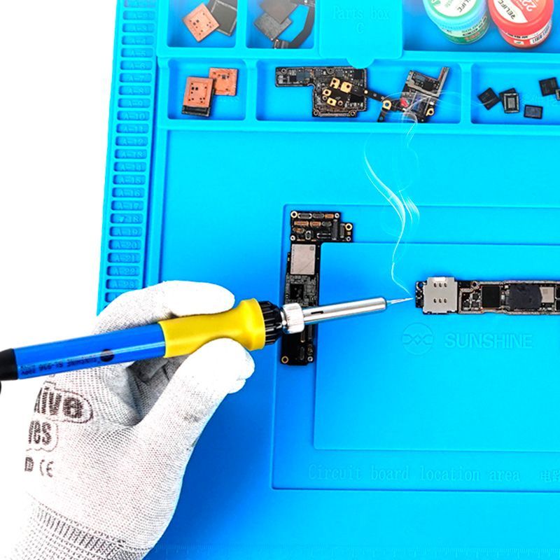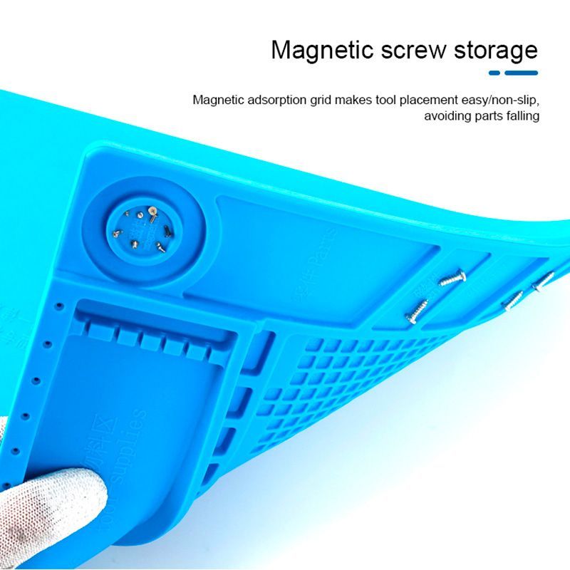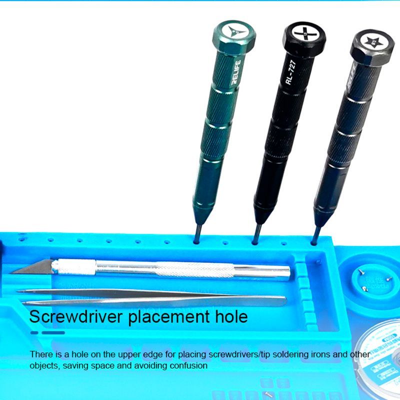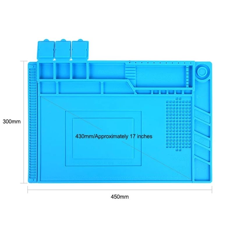 - Силиконовая основа обеспечивает отличное сцепление с рабочим столом и удерживает инструменты и компоненты на месте.