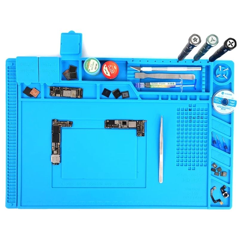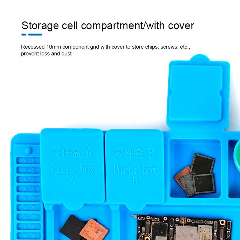 Антистатический силиконовый коврик Kaisi S-160 — это профессиональный аксессуар для ремонта электроники и пайки, предназначенный для организации рабочего места и защиты поверхности стола. Благодаря продуманной конструкции с множеством отсеков и высокой термостойкости, этот коврик значительно упрощает процесс ремонта и повышает его безопасность.