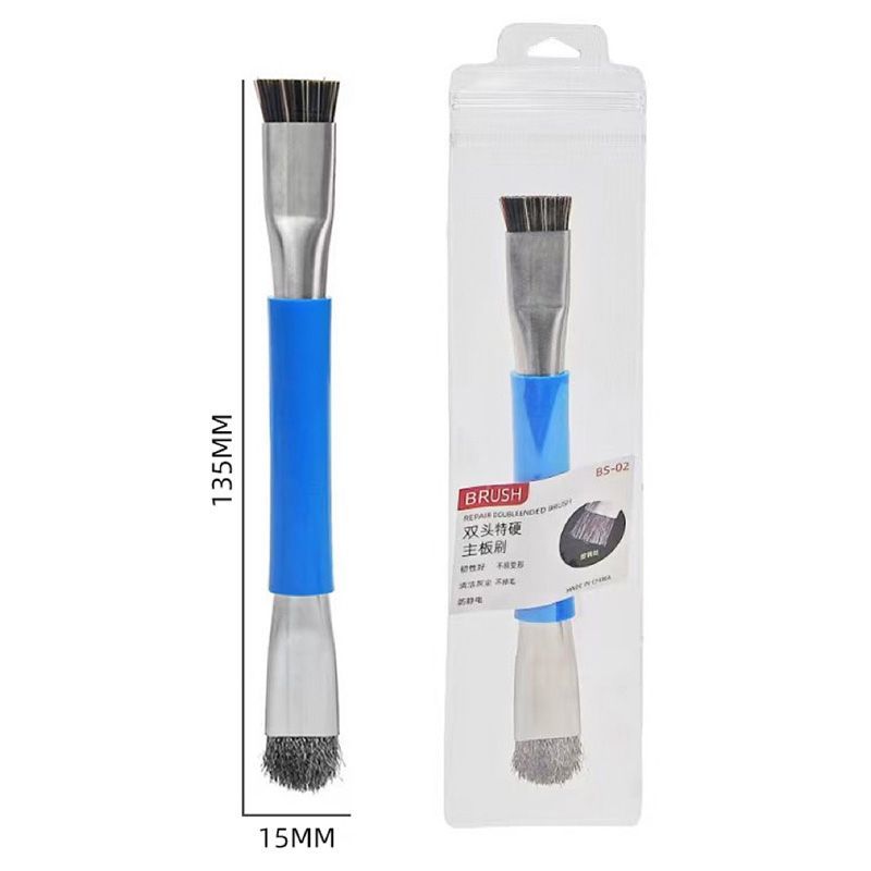 Двусторонняя конструкция и антистатическая щетина обеспечивают безопасную и эффективную очистку от пыли, загрязнений и остатков флюса. Металлический корпус повышает прочность инструмента и делает его надежным выбором для интенсивного использования в сервисных центрах.