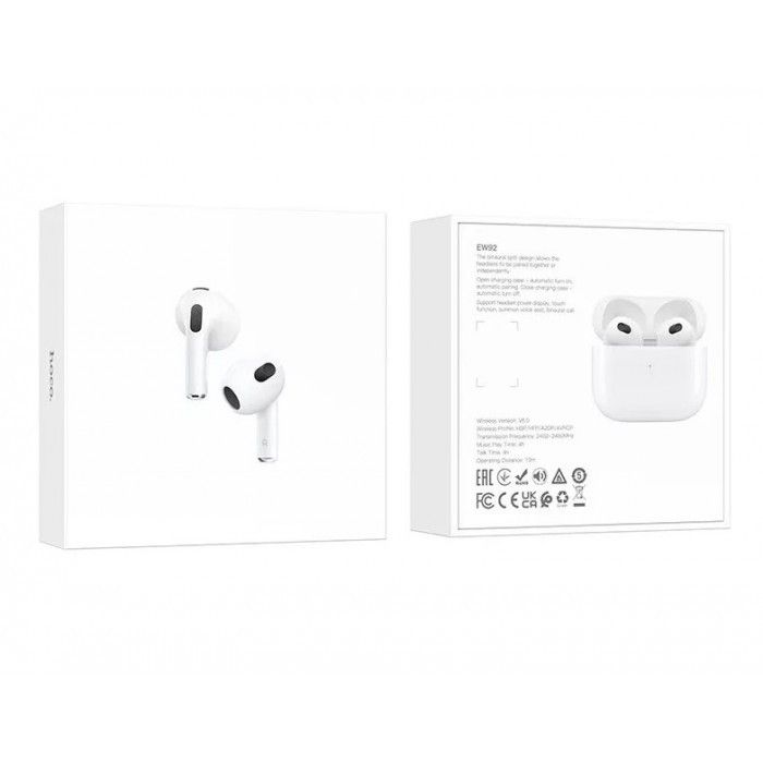HOCO EW92 — это современные полностью беспроводные наушники формата TWS в дизайне Earbuds (вкладыши), созданные для комфортного ежедневного использования. Они отлично подходят для прослушивания музыки, общения по телефону и работы с мобильными устройствами.