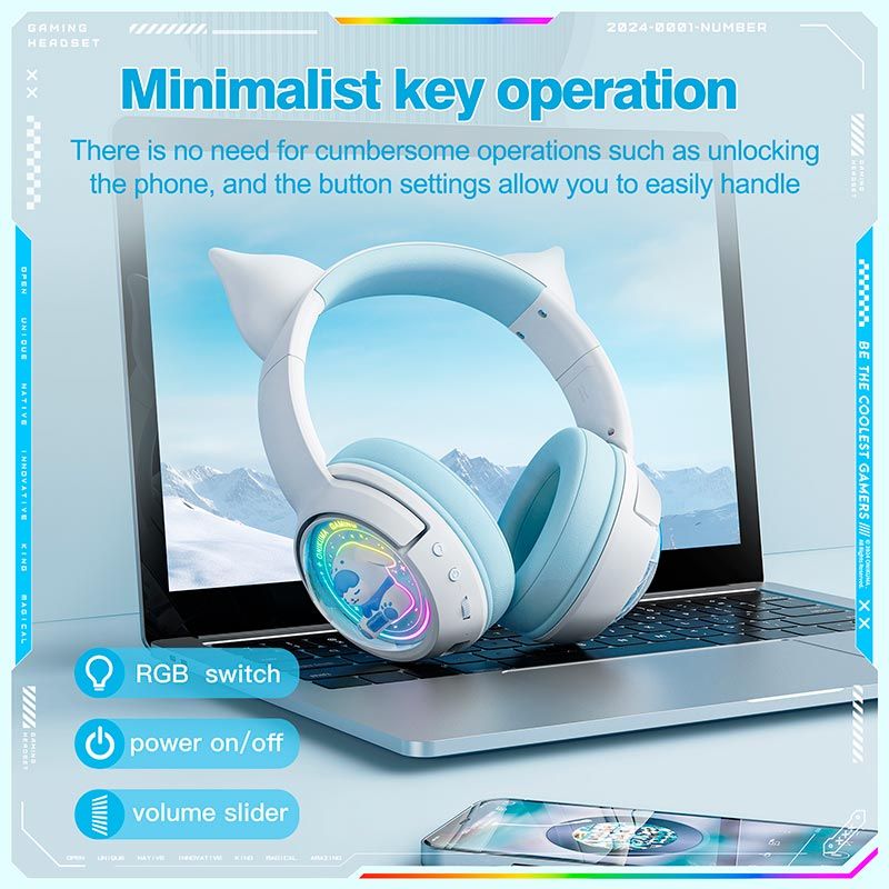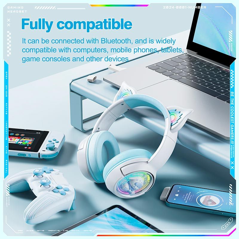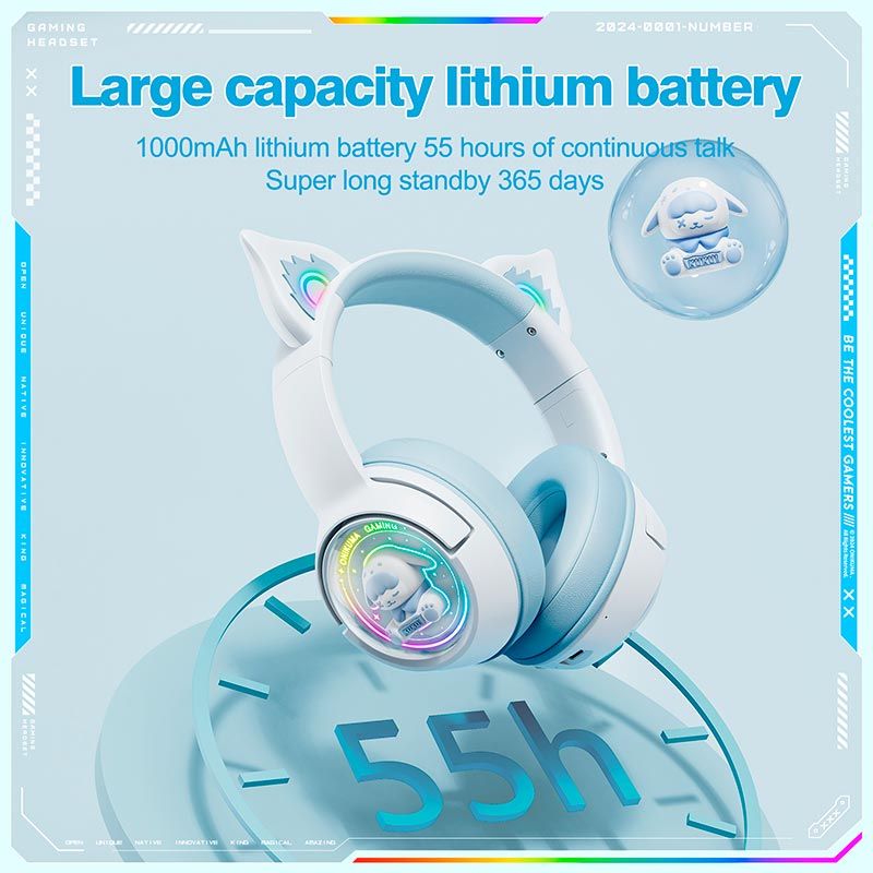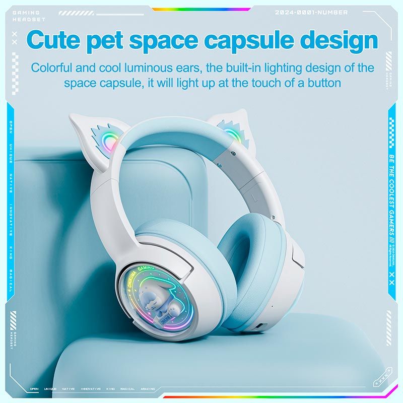 ONIKUMA B5 — это стильная беспроводная игровая гарнитура с оригинальным дизайном Cat Ear и яркой RGB-подсветкой. Модель сочетает в себе выразительный внешний вид, мощное звучание и универсальное подключение Tri-Mode, что делает её отличным выбором как для геймеров, так и для повседневного использования.