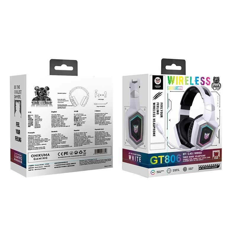 Наушники Onikuma Wireless Gaming Headset Headworn GT806 |BT5.4/2.4G, Type-C, 10-100H, RGB| white