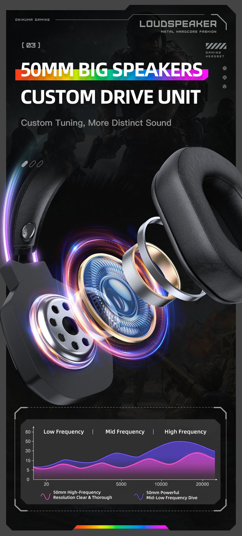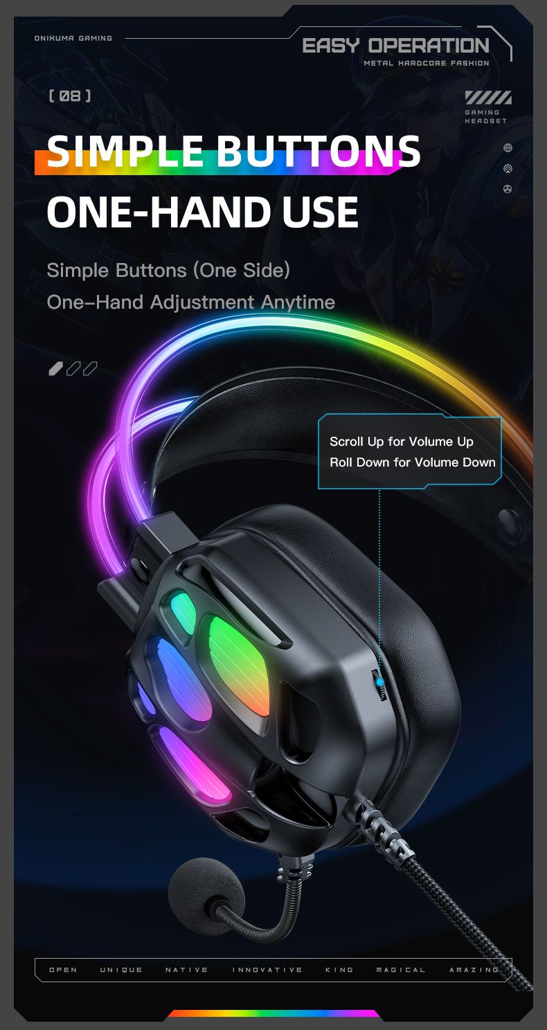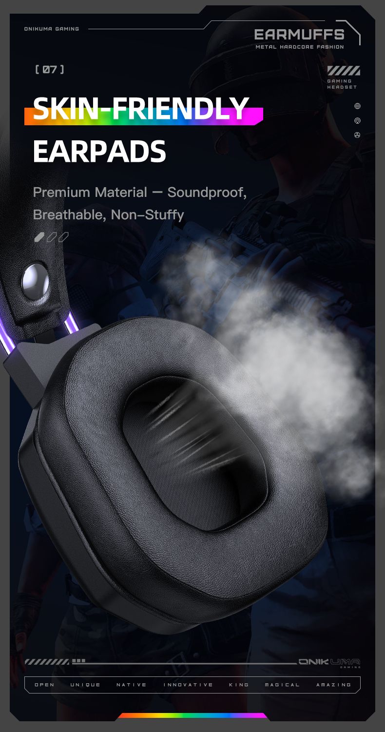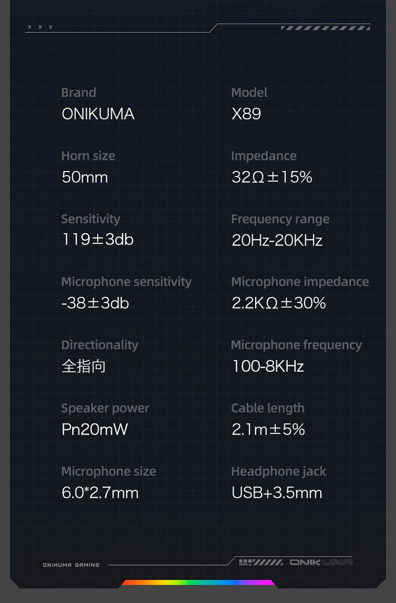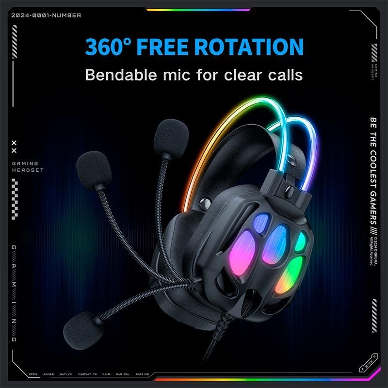 Onikuma X89 — это проводная игровая гарнитура с мощными 50-мм динамиками, эффектной RGB-подсветкой и эргономичным дизайном. Модель разработана для геймеров, которым важны качественный звук, точная передача голоса и комфорт даже при длительных игровых сессиях.