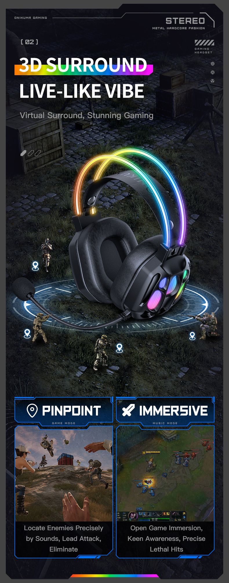 - Стильная подсветка с эффектами дыхания и переливов подчеркивает игровой стиль и делает эту гарнитуру частью современного сетапа.