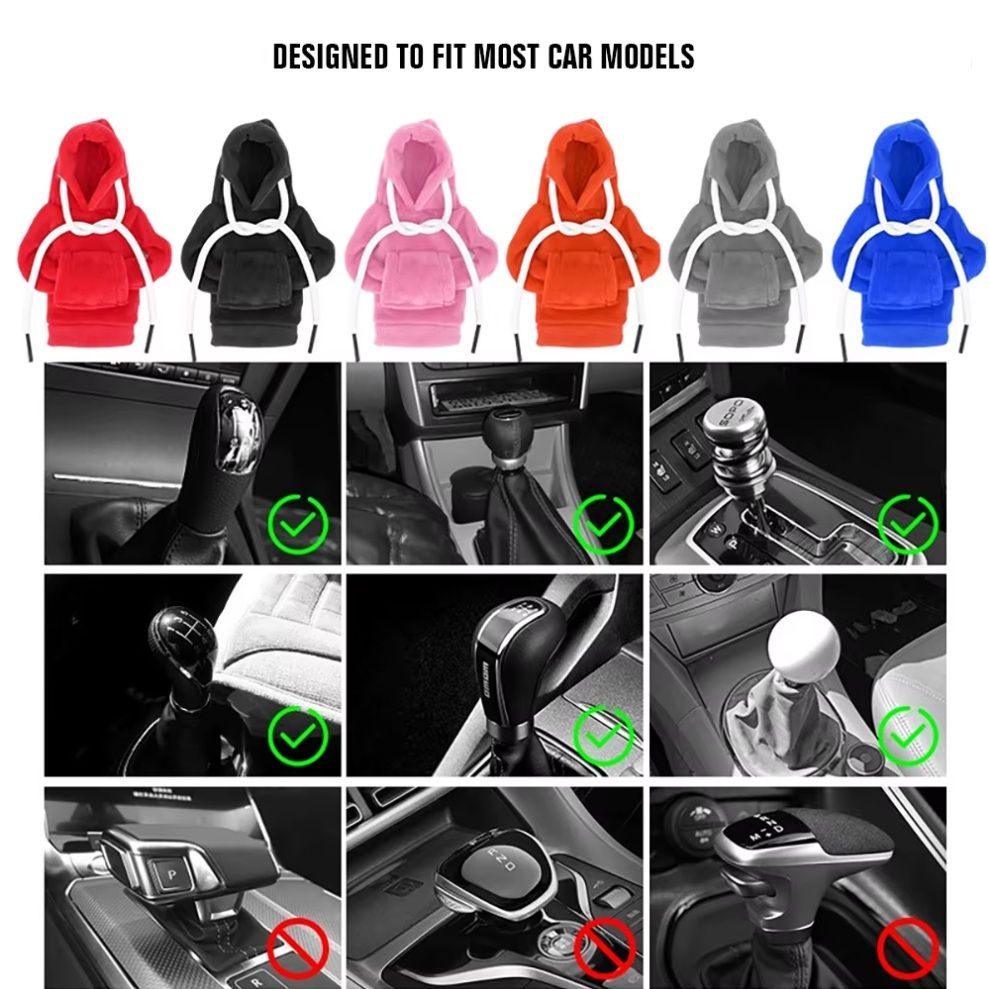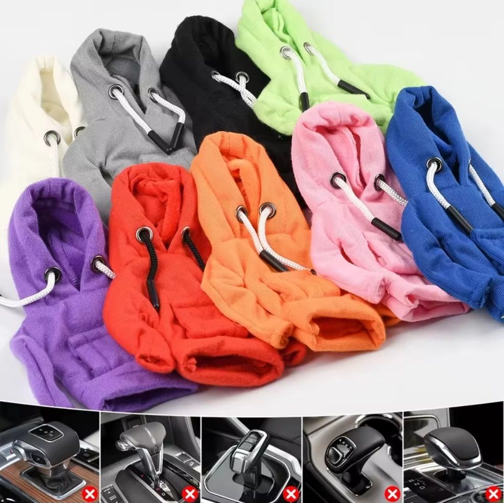 Стильный и необычный аксессуар для интерьера автомобиля — чехол в виде мини-толстовки с капюшоном. Он не только украшает салон, но и делает использование рычага переключения передач более комфортным. Подходит для большинства автомобилей с механической и автоматической коробкой переключения передач благодаря универсальному размеру.