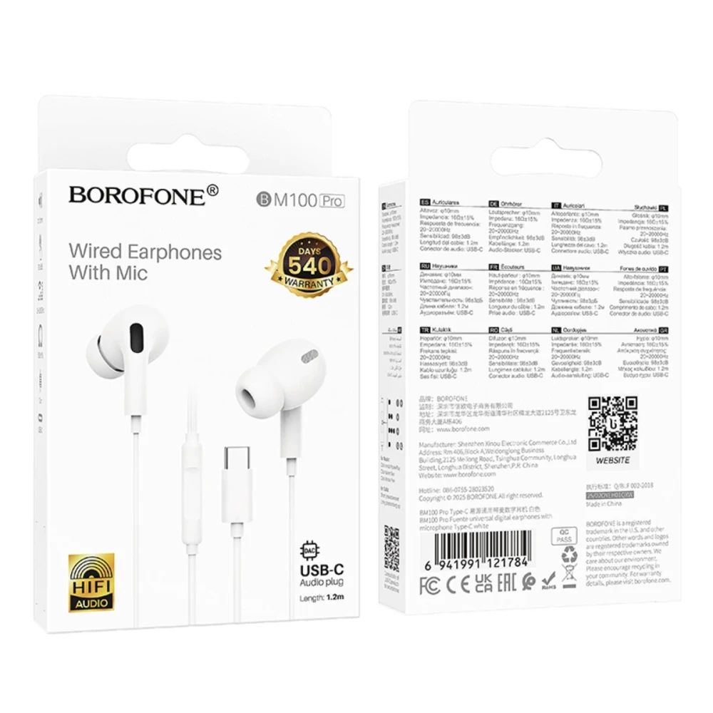 Borofone BM100 Pro — это улучшенная версия популярной модели, сочетающая цифровое качество звука, повышенную надёжность и комфорт при длительном использовании. Эти наушники предназначены для современных устройств без разъёма 3.5 мм и обеспечивают стабильную передачу аудиосигнала напрямую через интерфейс Type-C без использования переходников.