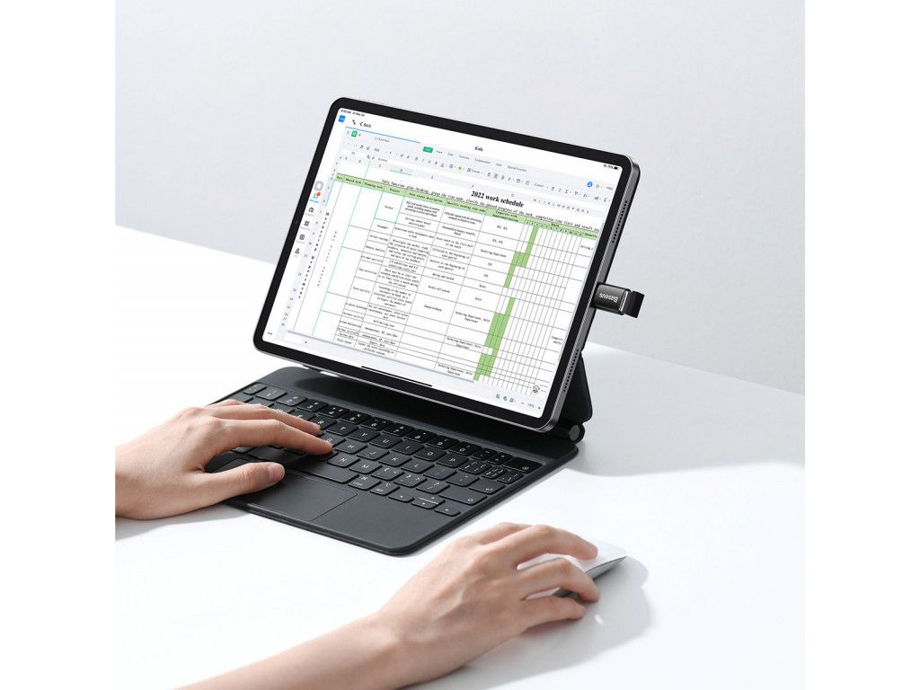 - Позволяет подключать флешки, клавиатуры, мыши, контроллеры и другие устройства напрямую к смартфону, планшету или ноутбуку с разъёмом Type-C без использования дополнительных переходников или драйверов