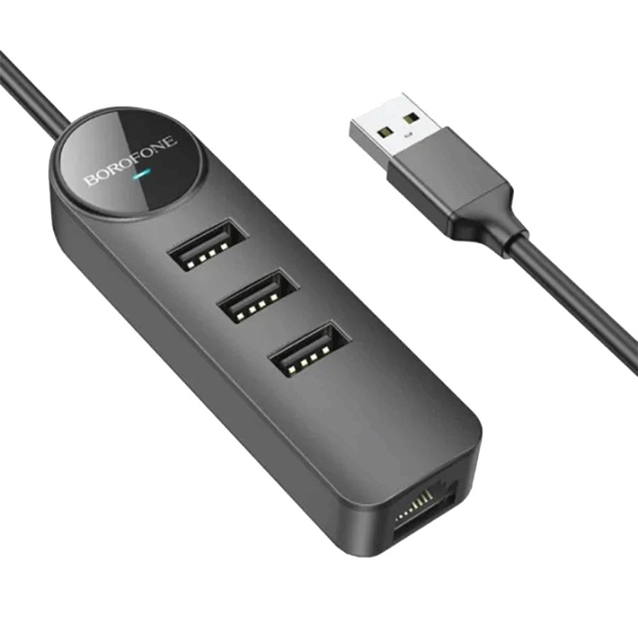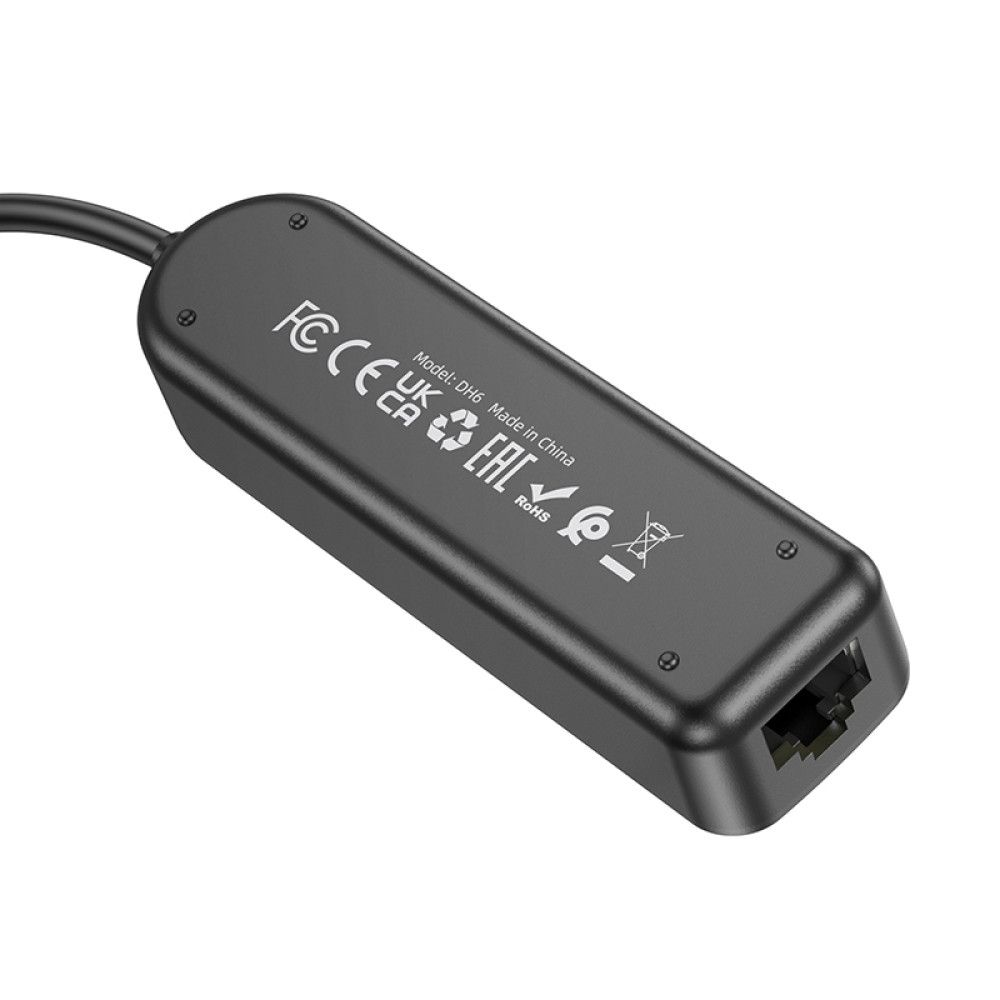 Адаптер Borofone DH6 Erudite 4-in-1 100 Mbps Ethernet Adapter(Type-C to USB2.0*3+RJ45) 0.2M Black