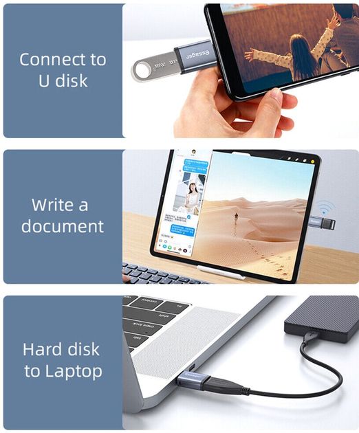 Адаптер Essager Soray OTG (USB Female to Type-C Male) USB3.0 Adaptor grey (EZJAC-SRA0G)