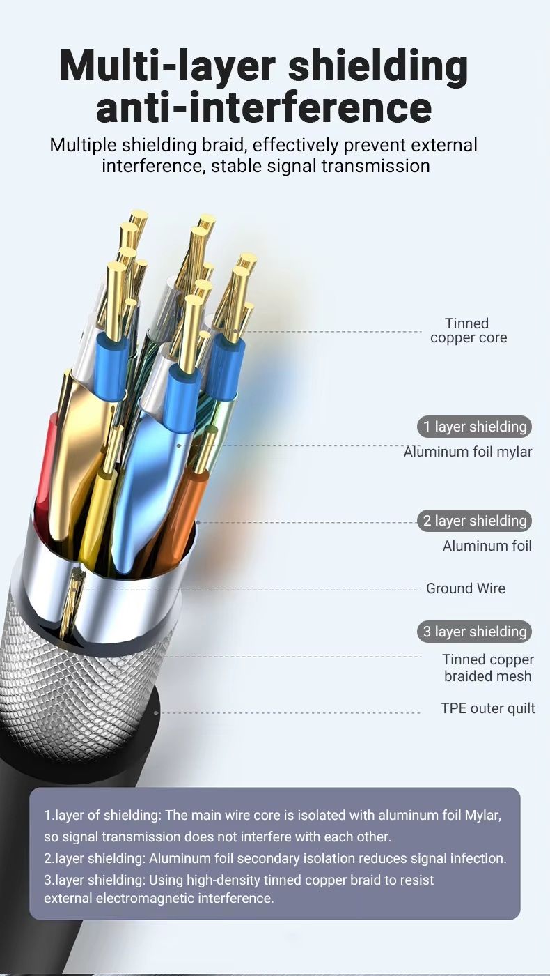 - Многослойная экранировка предназначена для защиты от электромагнитных помех.