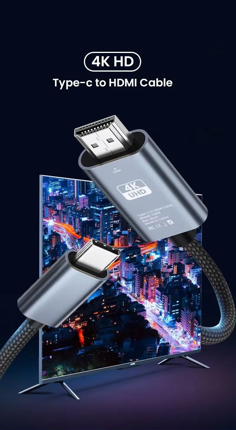 - Специально разработан для передачи сигнала с устройств с разъемом Type-C на дисплей с разъемом HDMI. (Примечание: поддерживаются только устройства с функцией видео-выхода.)