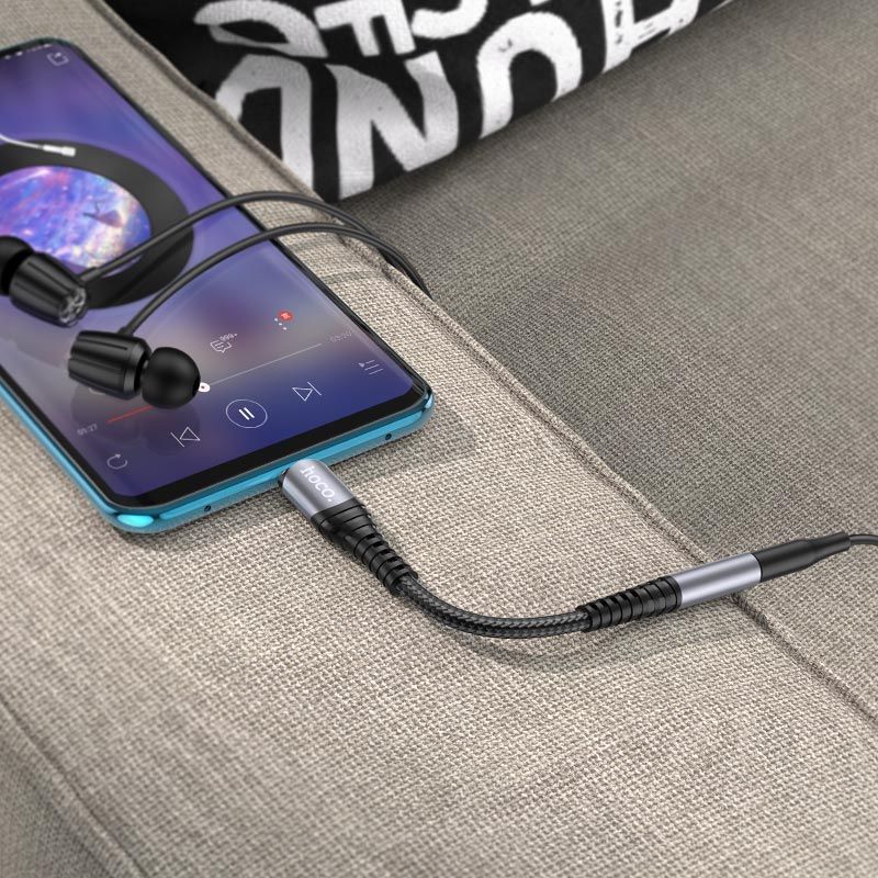 Аудио конвертер переходник Hoco LS33 Type-C to TRRS Jack 3.5 (F) 0.12м черно-серебристый