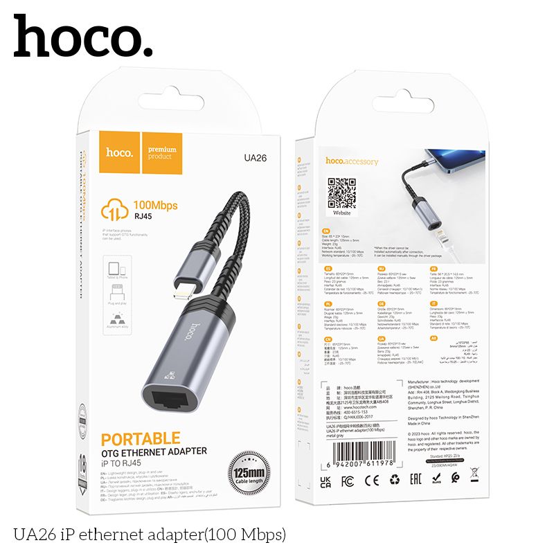 Адаптер переходник Hoco UA26 100 Mbps Lightning to RJ45 metal gray