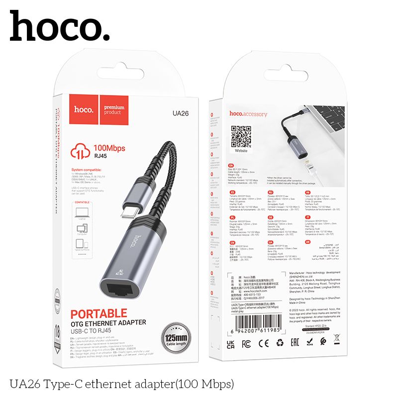 Адаптер переходник Hoco UA26 100 Mbps Type-C to RJ45 metal gray