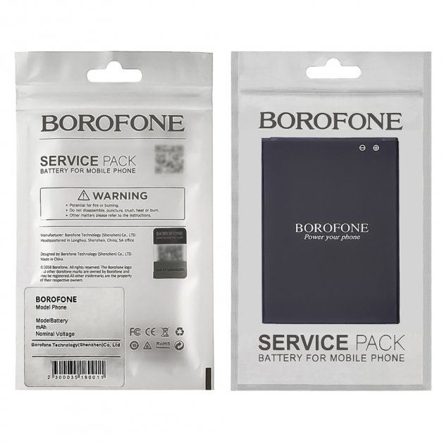 Borofone - бренд является одним из популярных производителей аксессуаров, мелких гаджетов и других некрупных товаров. Является ответвлением известного бренда Hoco в сторону демократизации цены. За счет большого ассортимента товаров и высоких продаж, обеспечивают хорошее соотношение цены и качества. Рекомендуем товары данного бренда среди аналогов. Аккумуляторы данного бренда - полноценная замена родной батарее. Поставляются в технической упаковке (пакет, пленка).