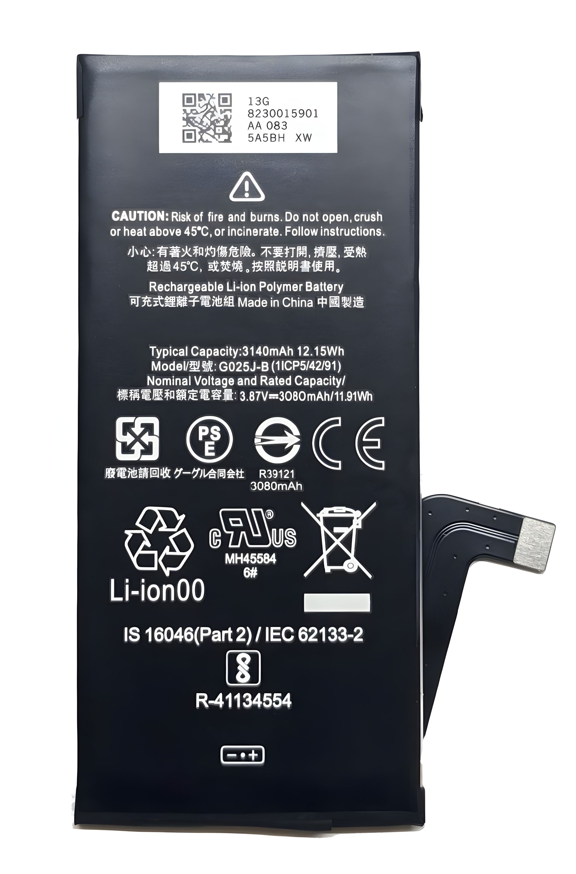 Аккумулятор для Google G025J-B Pixel 4A, 3140 mAh [Original PRC] 12 мес. гарантии
