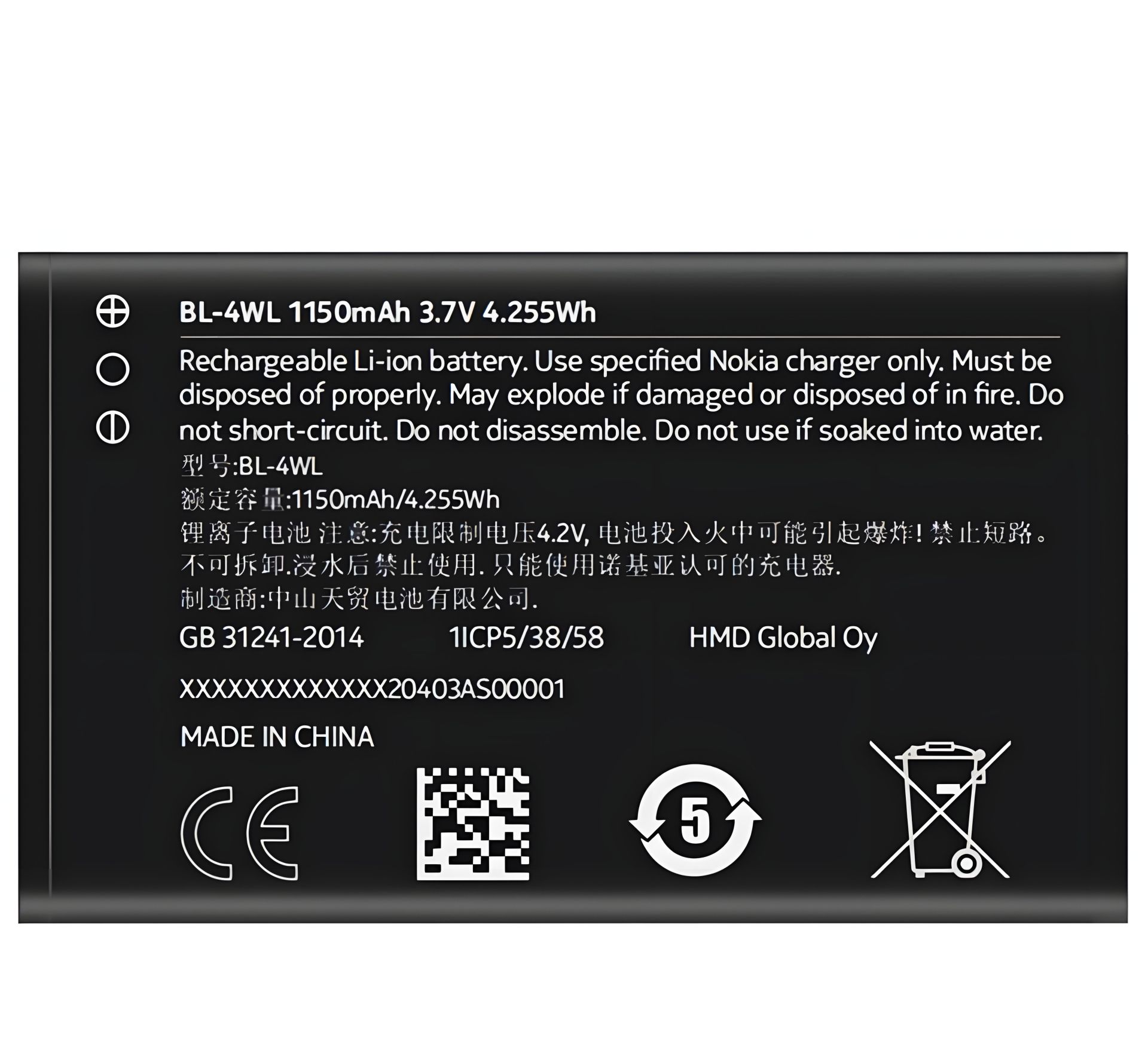 Для моделей Nokia (Microsoft): 6310 Dual Sim (2021), 225 4G, TA-1321, TA-1296, TA-1279, TA-1276, TA-1282 Маркировка АКБ: BL-4WL