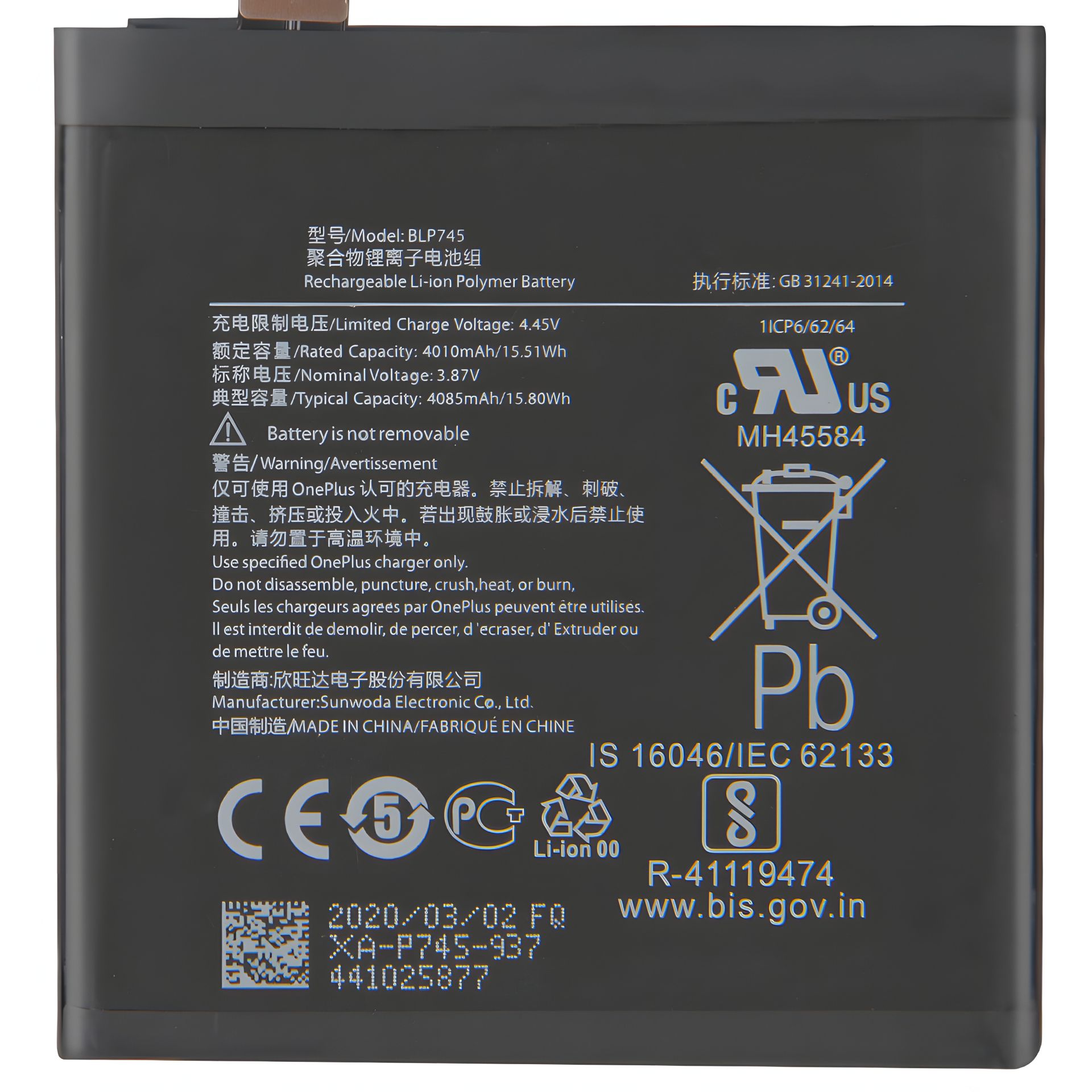 Аккумулятор для OnePlus 7T Pro / BLP745 (4085 mAh) [Original PRC] 12 мес. гарантии