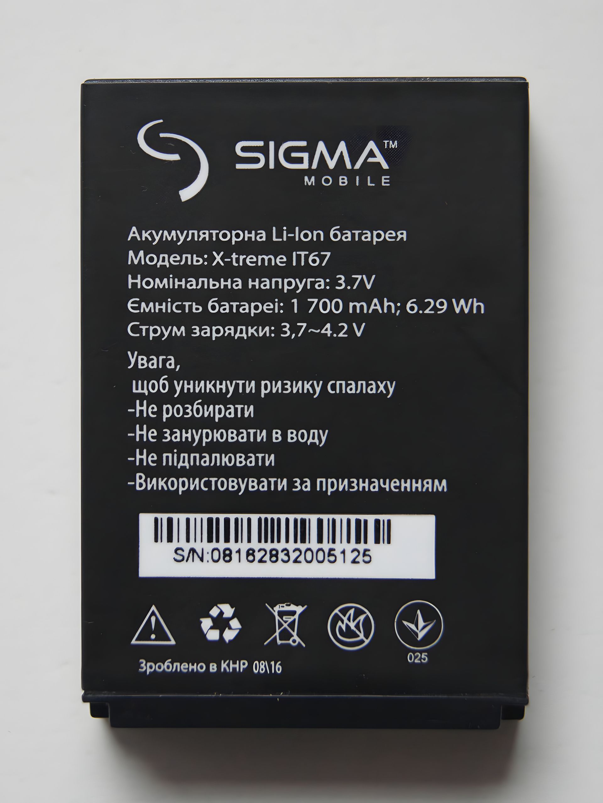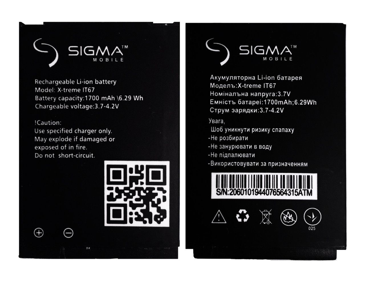 Для моделей Sigma: X-Treme IP67, X-Treme IT67 Маркировка АКБ: Sigma IP67