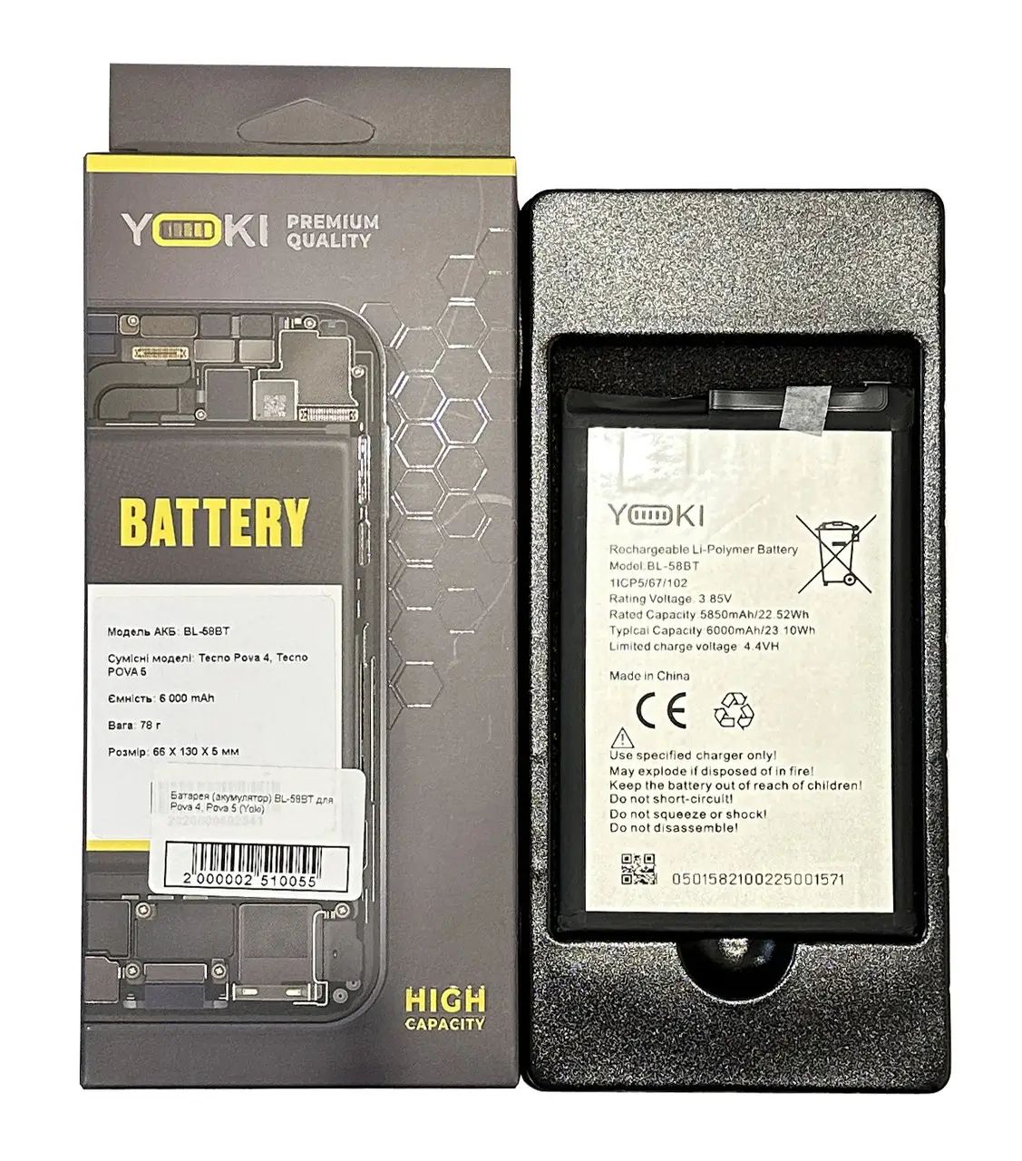 Аккумулятор для Tecno Pova 4, Pova 5 / BL-58BT Yoki