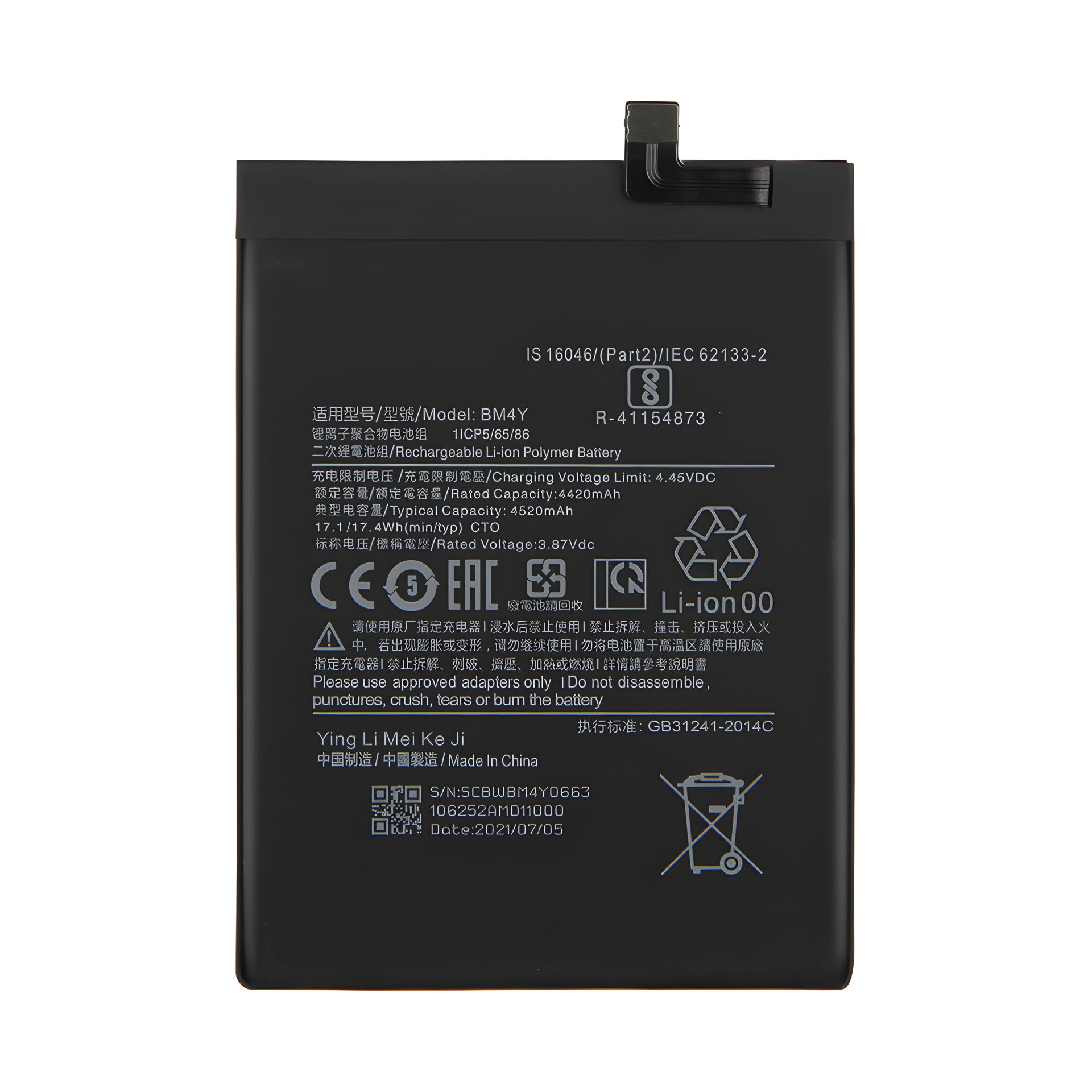 Аккумулятор для Xiaomi Mi 11x / Redmi K40 / Redmi K40 Pro / Poco F3 BM4Y (4520 mAh) [Original PRC] 12 мес. гарантии