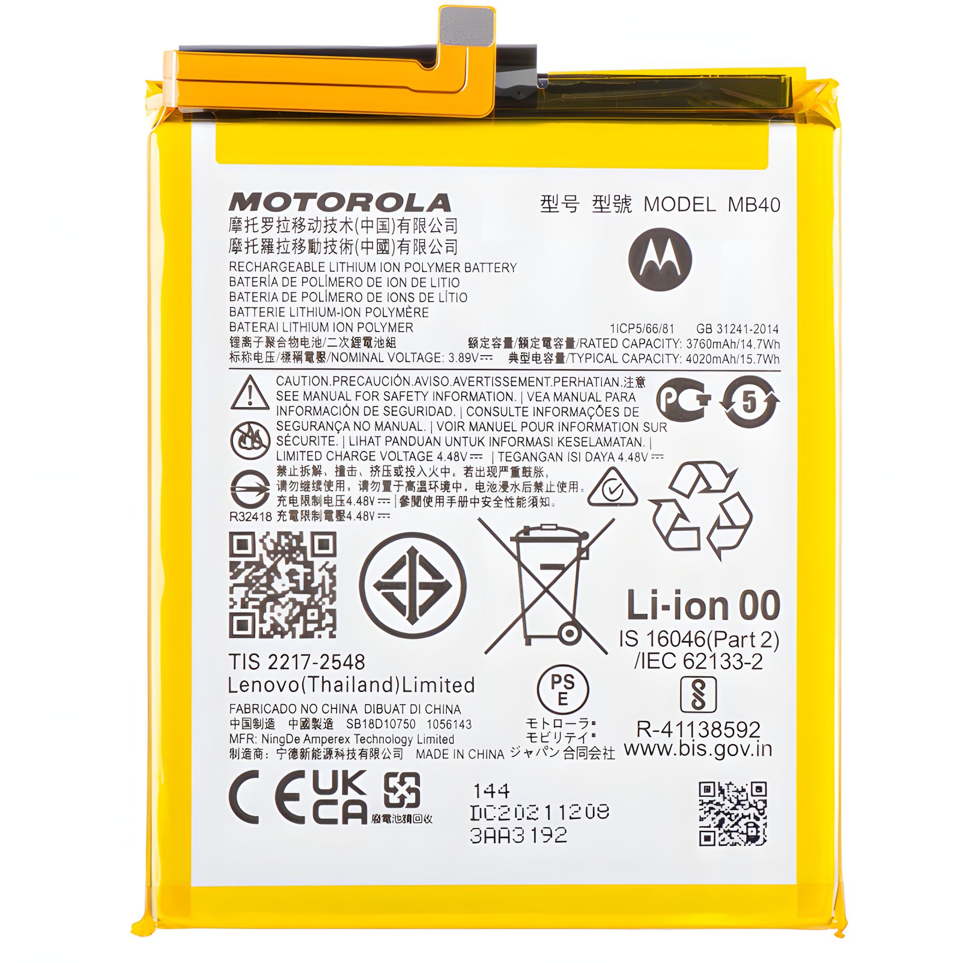 Аккумулятор Motorola MB40 Edge 20, 4020 mAh [Original PRC] 12 мес. гарантии