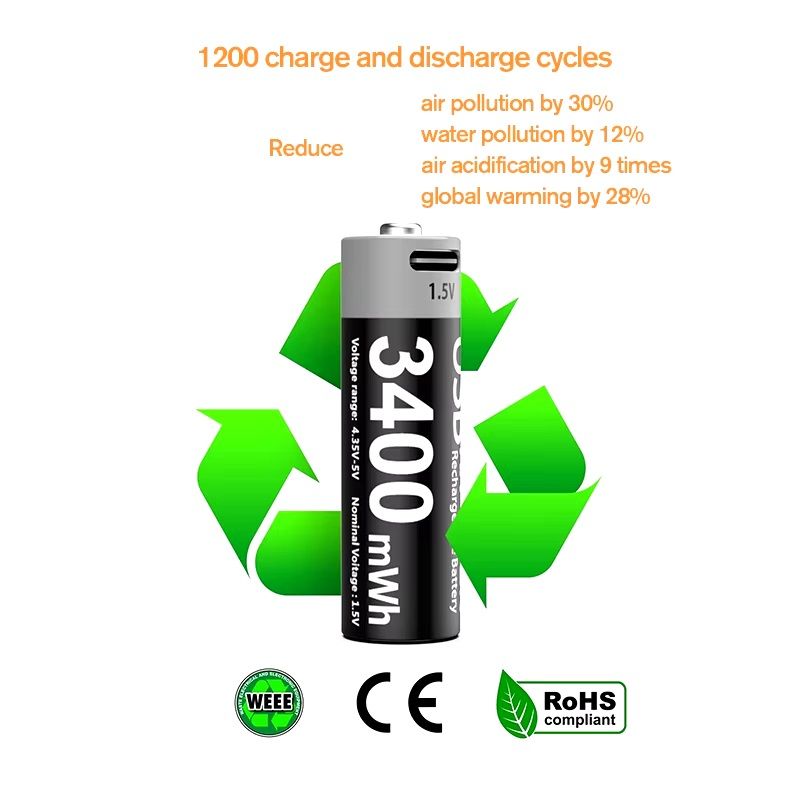 Уникальность этих аккумуляторных батареек заключается в возможности подзарядки от USB-кабеля, благодаря чему не требуется покупать для них зарядное устройство, ведь их можно зарядить от USB порта компьютера, повербанка или сетевого блока питания от телефона. Каждая аккумуляторная батарейка обладает 1000 циклов заряд-разряда, поэтому они пригодные для повторного использования, экологичные и долговечные.